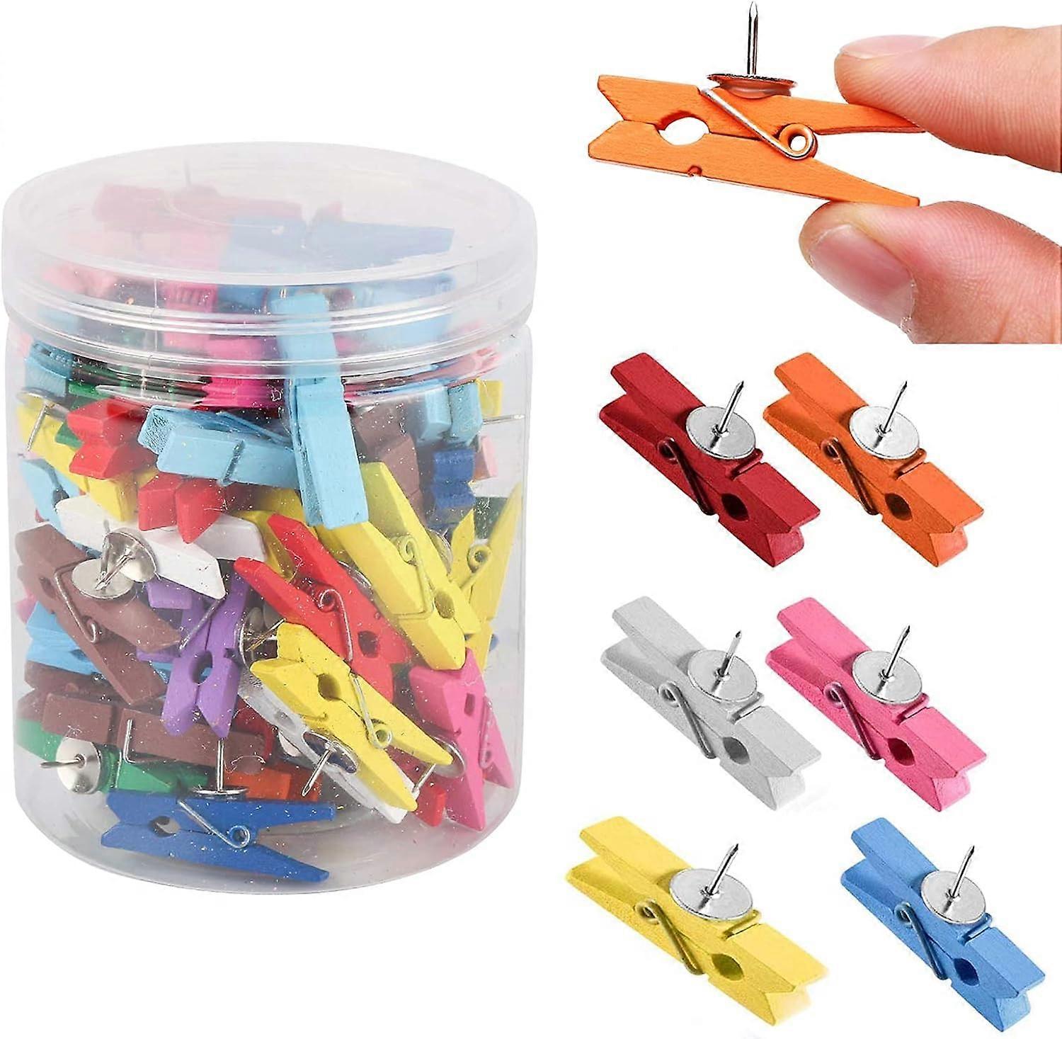 30 PCS Push Pin with Wooden Clips, Durable Wooden Push Pins, Decorative Pushpins Tacks Thumbtacks, Tacks for Cork Board Artworks Notes Photos, Craft P