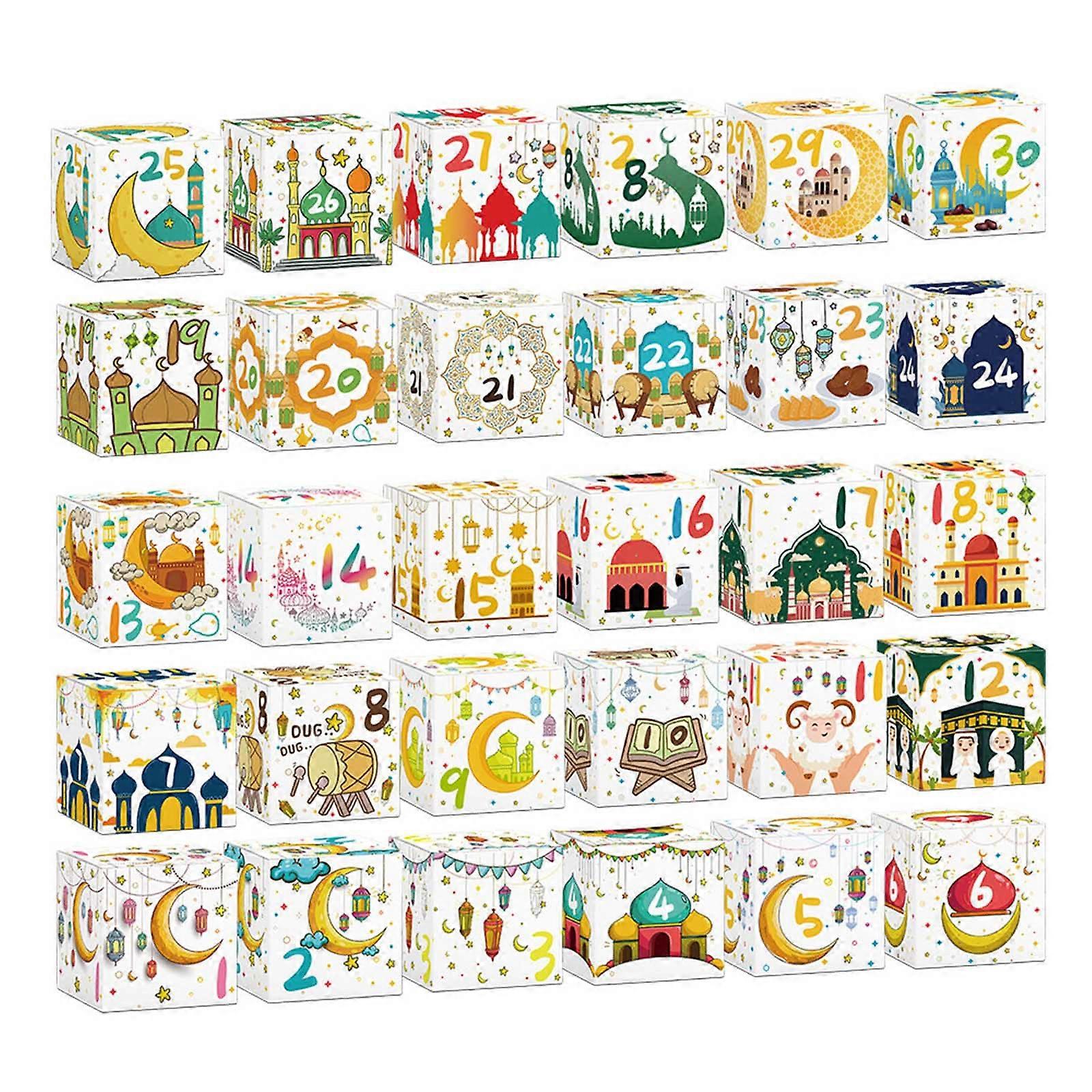 30Pcs Eid Countdown Candy Boxes Treat Boxes Cookie Candy Bags Easy Assemble For Candies And Cookie Packaging