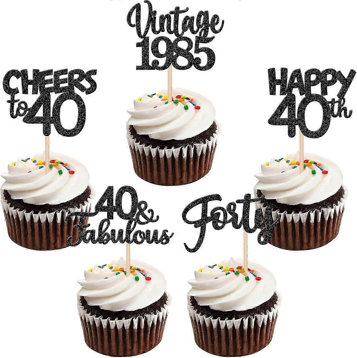 30PCS Happy 40th Birthday Cupcake Toppers Glitter Forty Vintage 1985 Cupcake