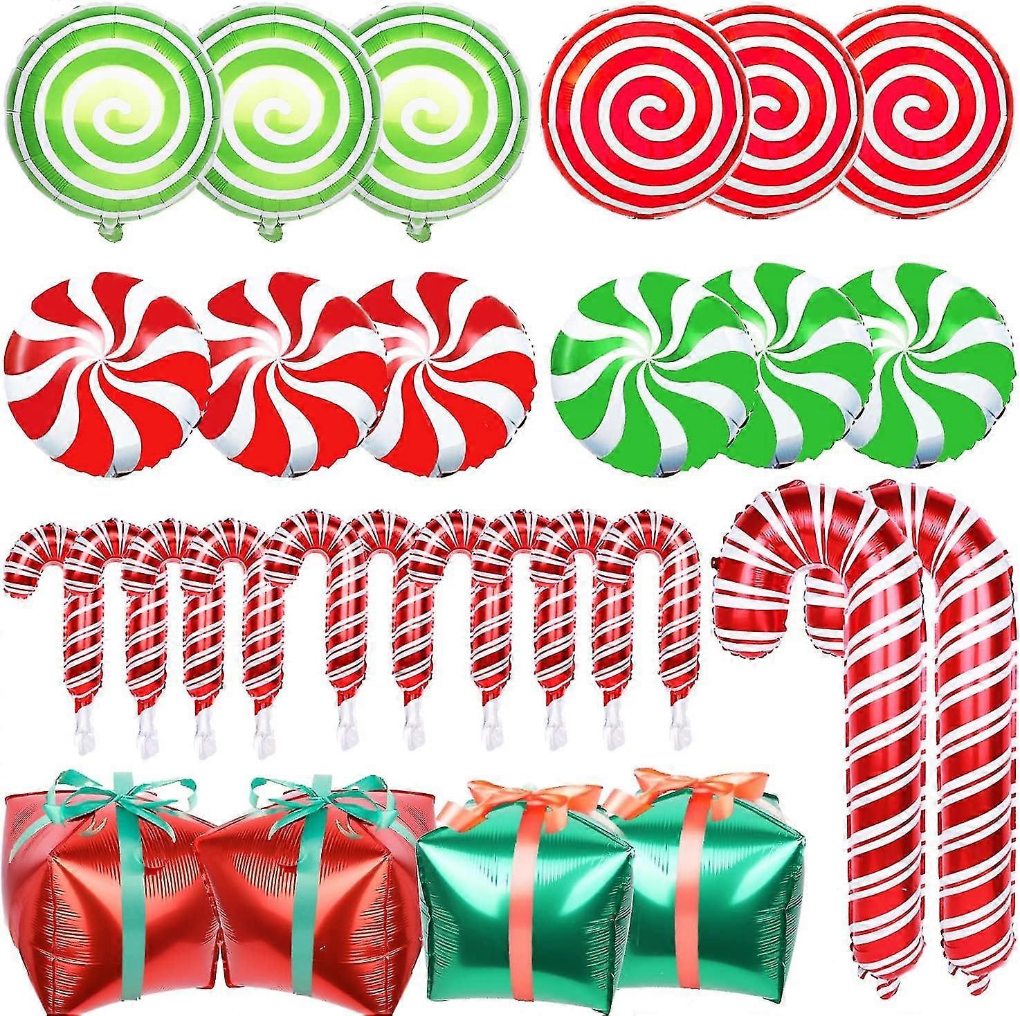 30pcs Christmas Balloons Decoration Set, Candy Cane Gift Box Mylar Foil Balloons For Christmas New Year Candies Xmas Theme Party Decorations
