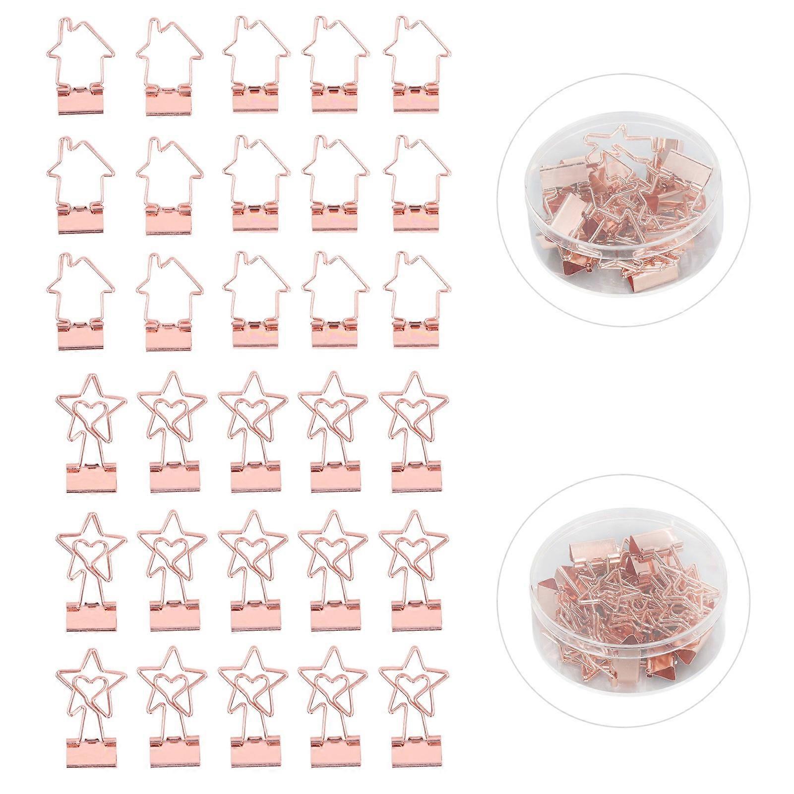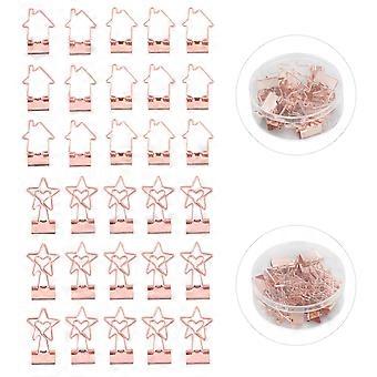 30Pcs Small Paper Clips Rose Gold Durable Metal Star and House Style Hollow Binder Clips for Documents Clothes Papers