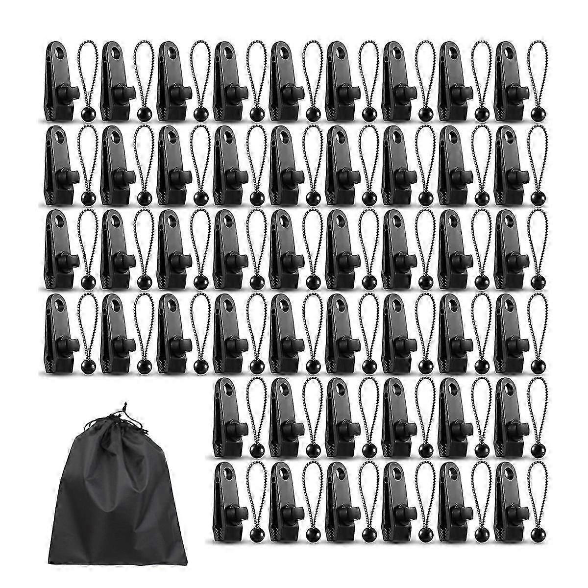 30 Pcs Tarp Clips and 30Pcs Ball Bungee Cords, Tarp Clamps Heavy Duty Lock Grip Tent Fasteners Clips