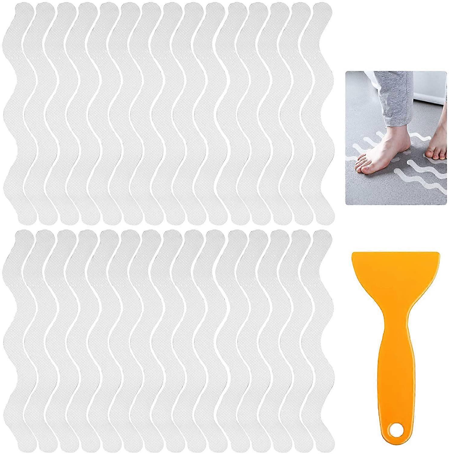 30 Pieces Anti-slip Safety Stickers Bath, Transparent Shower Anti-Slip Strip with Scraper, for Bath, Bathtubs, Stair Treads - S
