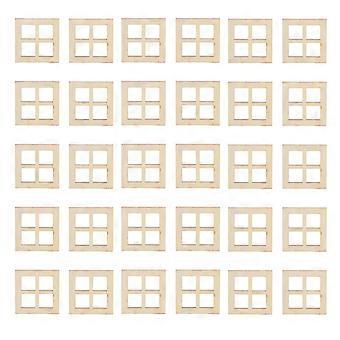 30 Pcs 1:12 Dollhouse Miniature DIY Wooden Windows Doll Home Furniture Craft Shoot Props for Dollhouse Decoration Wood Color 7x7cm