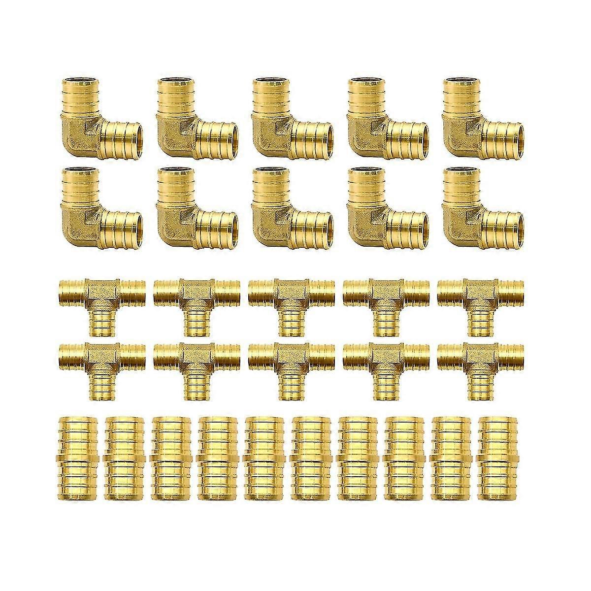 30pcs 3/4inch Brass Fittings Tee Coupler Reducer Crimp Cinch, Brass Crimp Fitting Combo With Tees"t