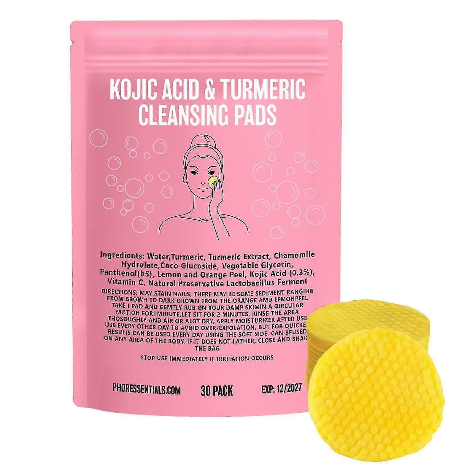 30-90pcs Turmeric Kojic Acid Exfoliating Cleansing Pads for Face & Body, Dark Spot Fading & Skin Resurfacing, Daily Use