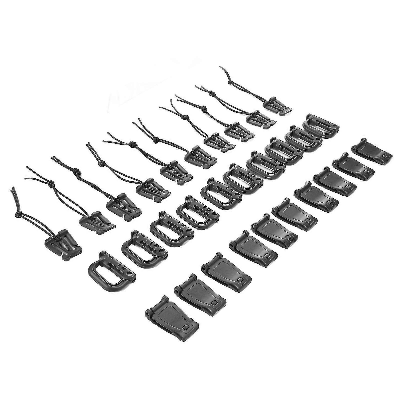 30 Pieces Backpack Bag Clip Strap Set with D Ring Grimlock Locking Web Dominator Elastic Strings Strap Management Tool Buckle Black Edition 1110
