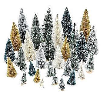30 Pieces Miniature Pine Trees Sisal Trees With Wood Base compatible with Miniature Scenes, Tabletop Decorecture Trees
