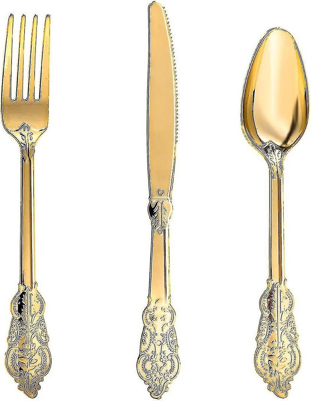 300 Pieces Gold Plastic Silverware Cutlery - Heavy Duty Gold Plastic Cutlery Set, 100 Gold Forks, 10