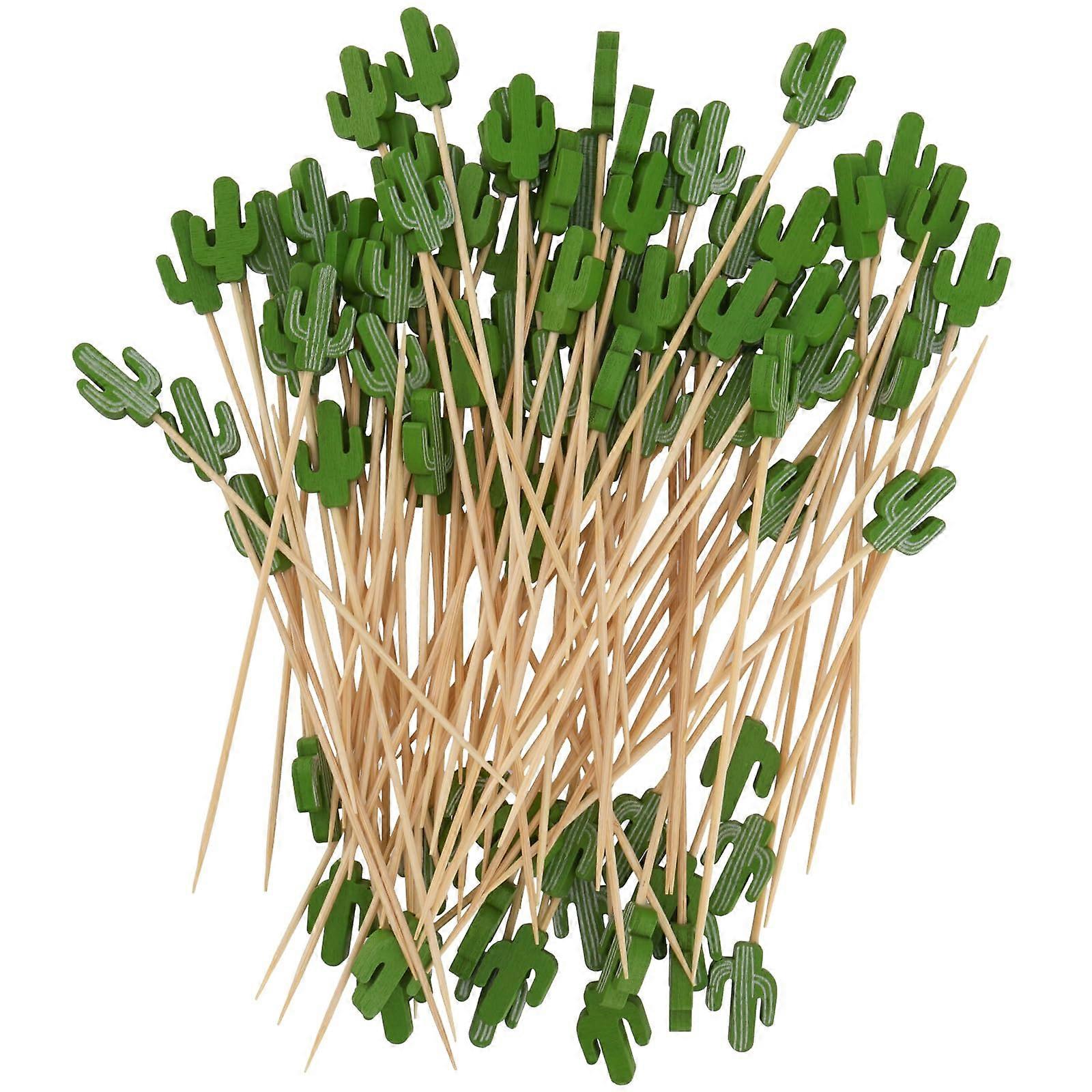 300 Count Cocktail Sticks, 12cm, Bamboo Cocktail Sticks, Cocktail Picks Sticks with Green Cactus for Finger Food, Sandwich, Nibbles, Party