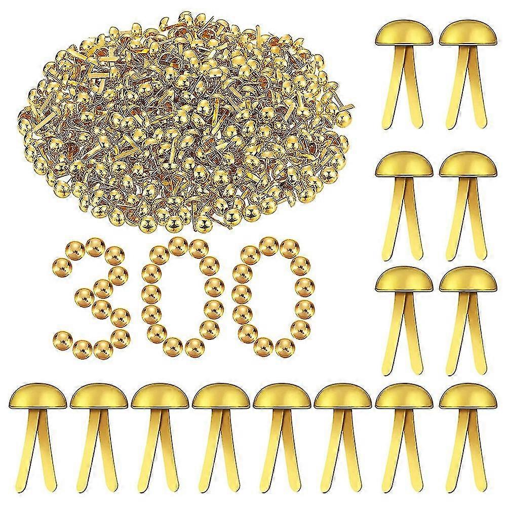 300 Pieces Of Paper Fasteners Round Headgear Sturdy Fasteners Suitable For Art Handmade Decoration Scrapbook Diy Gold