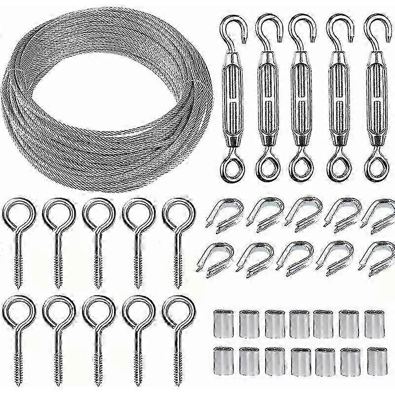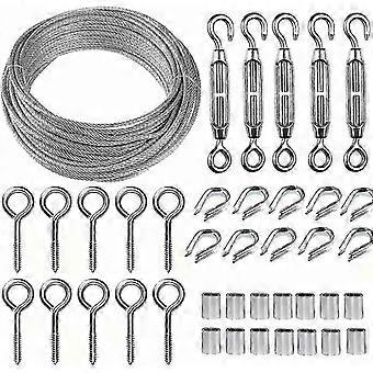 30m/2mm Stainless Steel Wire Rope Kit With M5 Heavy Duty Wire Tensioner, Fence Wire Roll Kit, Cable Guardrail Kit, Garden Wire Tensioners For Climbing