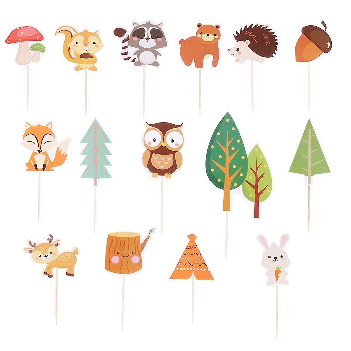 30pcs Adorable Animal Tree Party Cake Insert Decor Forest Animals Theme Cupcake Toppers Paper Decorating Cake Picks Birthday Party Favors