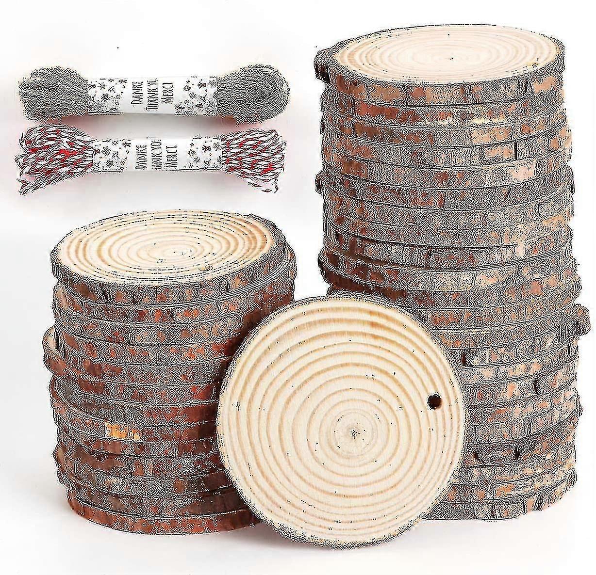 30pcs Natural Wood Slices 6-7cm Log Discs Wooden Circles With Natural Jute Twine