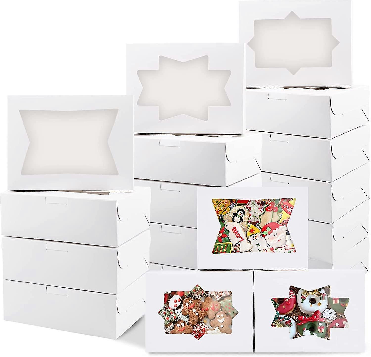 30pcs Cookie Boxes With Window 3 Styles White Bakery Treat Boxes Loaf For Chocolate Strawberries, Cupcakes, Cookies, Candies And Pastries 8 X 6 X 2.5