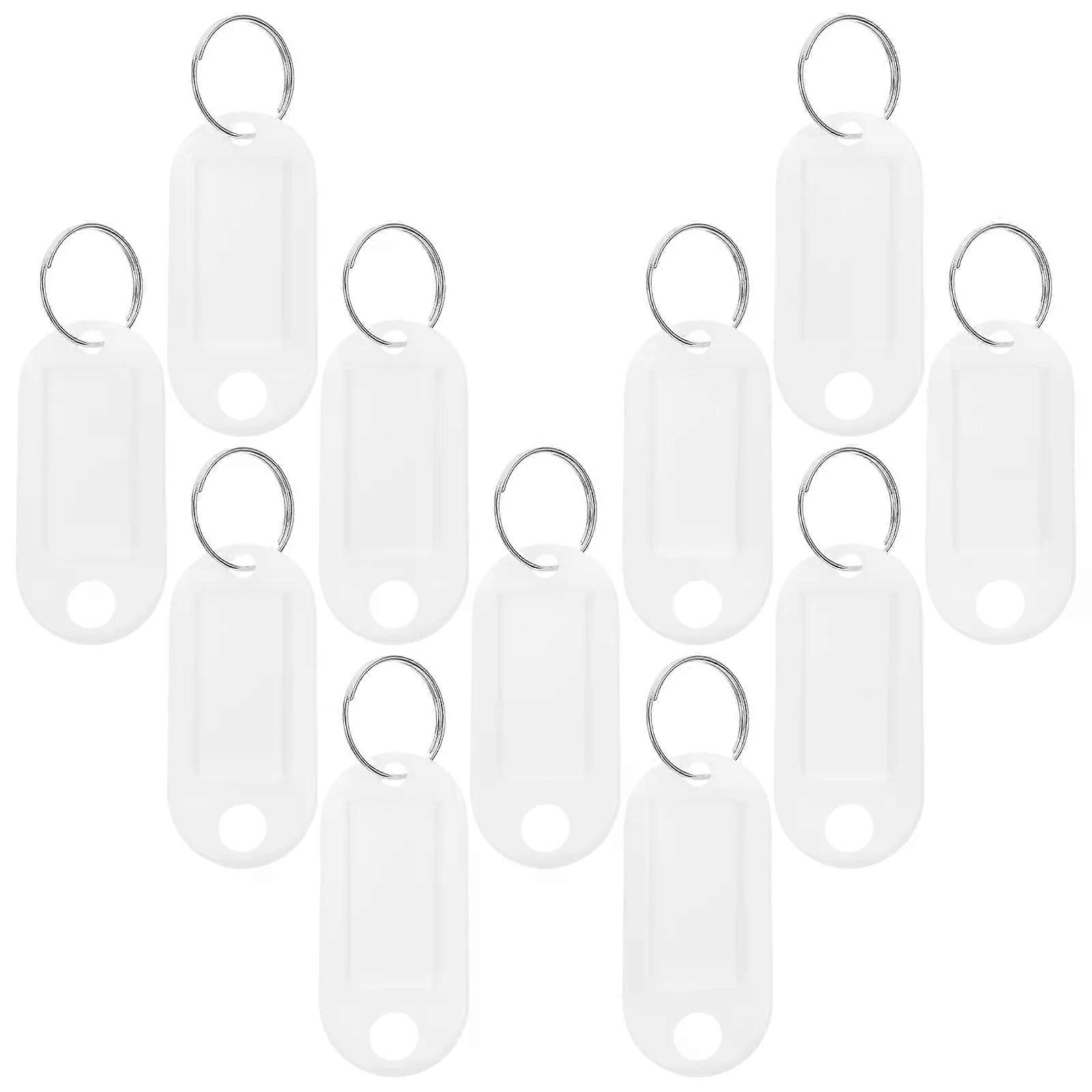30pcs Plastic Keychain ID Tags Name Label Language Number Mark Classification Tag (White)