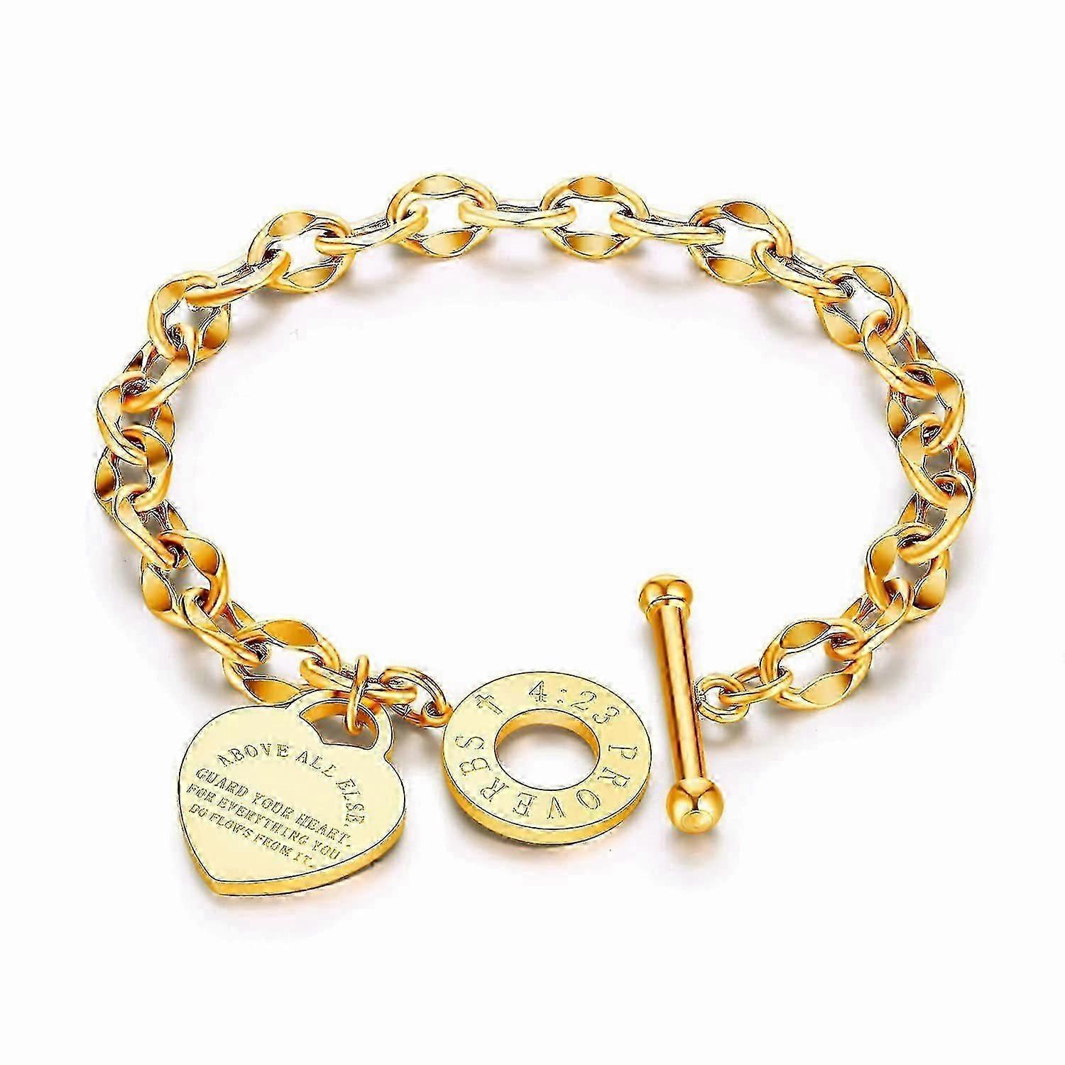 316l Stainless Steel Love Heart Charm Bracelet For Women Teen Girls Romantic Gift Silver/rose/18k Gold Plated Ot Clasp Bracelets - -