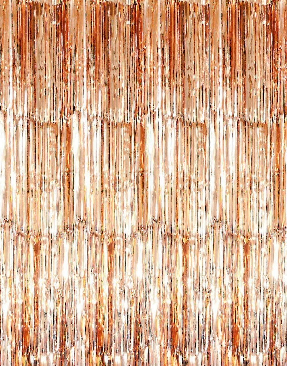 3.2 ft x 9.8 ft Metallic Tinsel Foil Fringe Curtains for Party Photo Backdrop Wedding Decor (2 Packs,Champagne Gold)