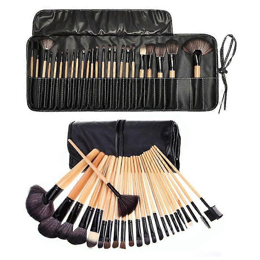 32pcs Wooden Colourful Handle Makeup Brush Set, Portable Beauty Tools