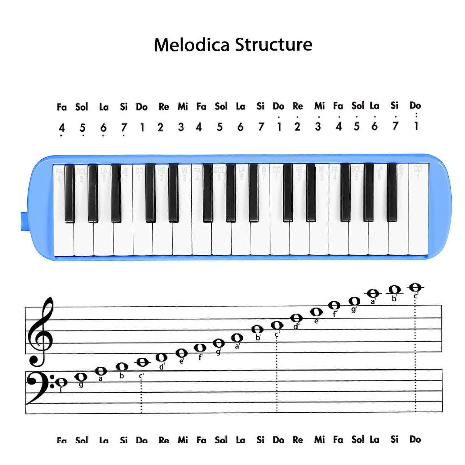 32 Keys Melodica Pianica Piano Style Keyboard Harmonica Mouth Organ with Mouthpiece Cleaning Cloth Carry Case for Beginners Kids Musical Gift