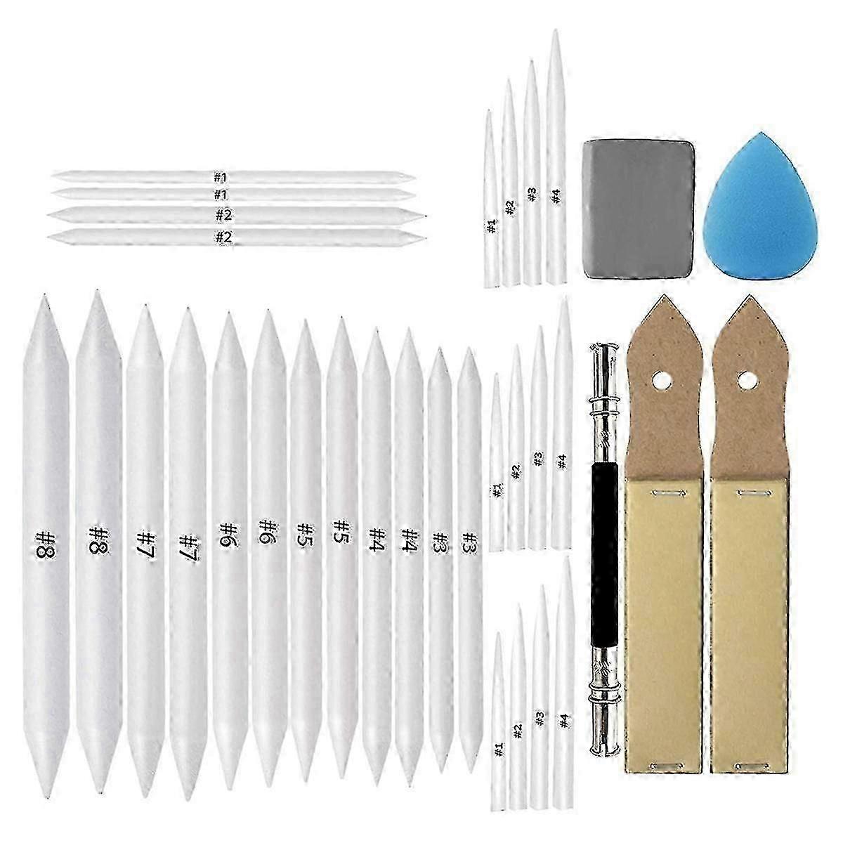 33 Pcs Blending Stumps and Tortillions Set Art Blenders with Sketch Sandpaper Pencil Sharpener Pencil Extension Tool