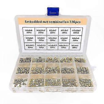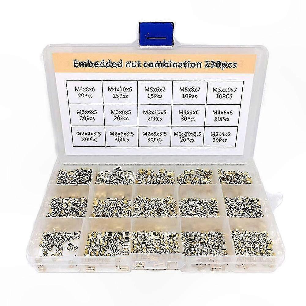 330Pcs Assorted Copper Insert Nuts M2-M5 Brass Knurled Round Molded Nuts in Organizer Box