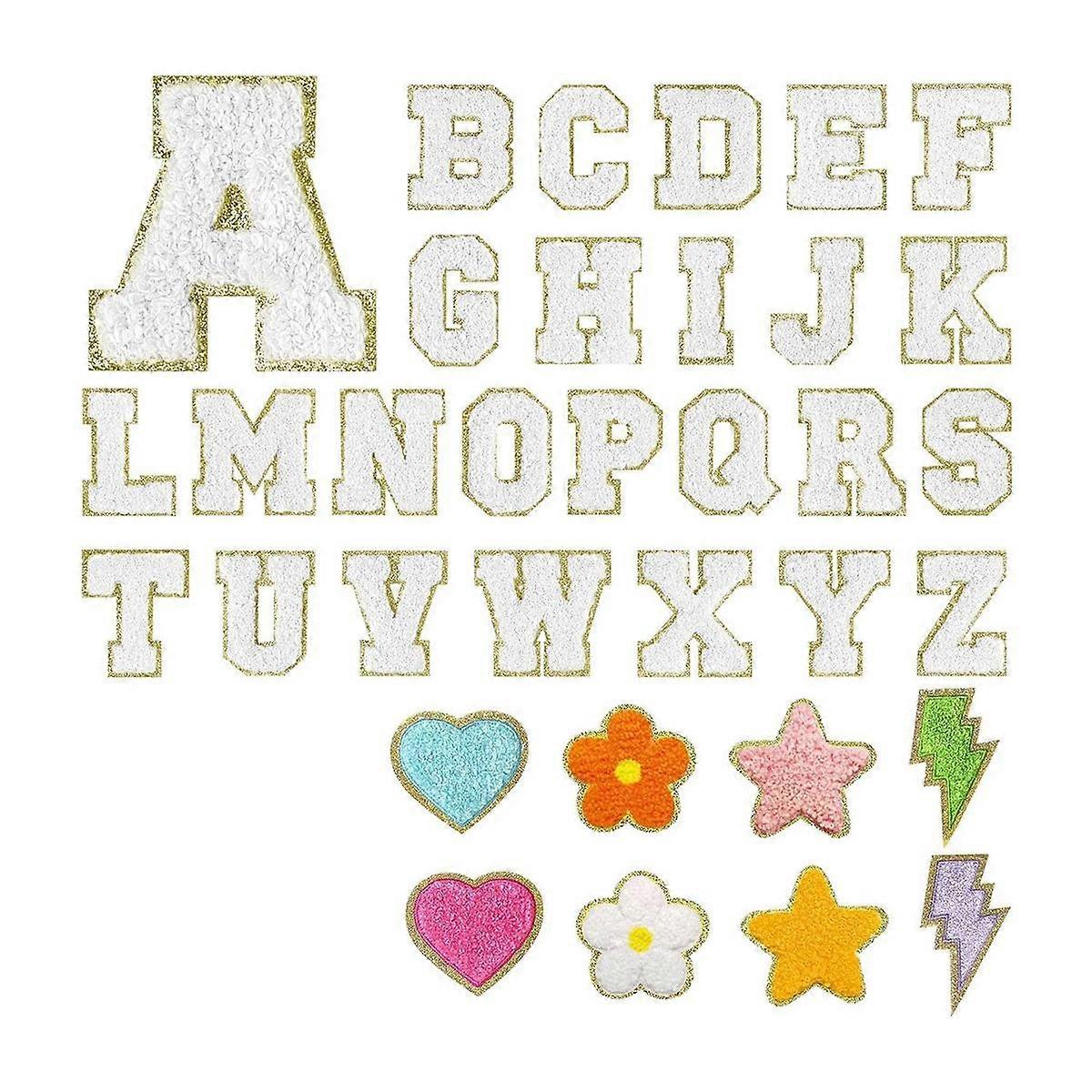 34 Pcs Chenille Letter Patches Iron on Letters A-Z Glitter Letters with Cute Sew Iron on Patch Embr