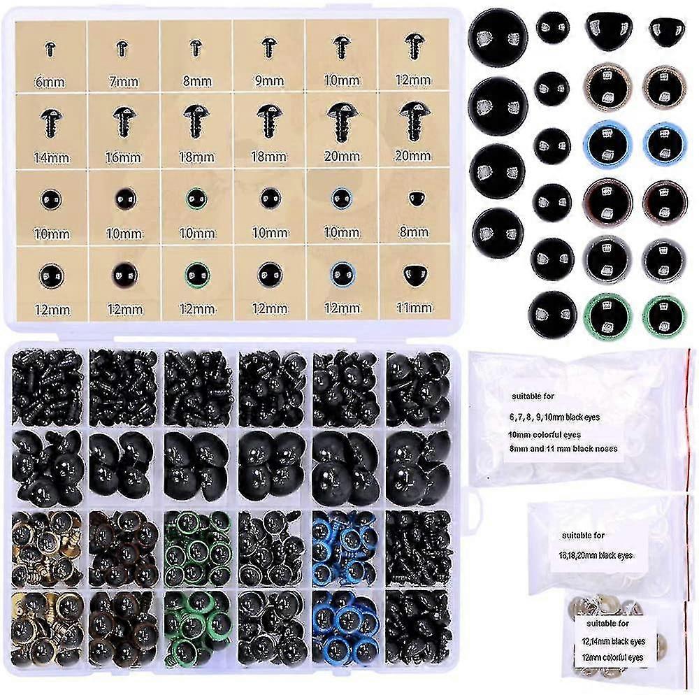 348 Pcs 6-20mm Black Plastic Safety Eyes Colorful Plastic Safety Eyes Craft Eyes And Safety Noses With Washers For Doll, Puppet, Plush Animal(wanan)