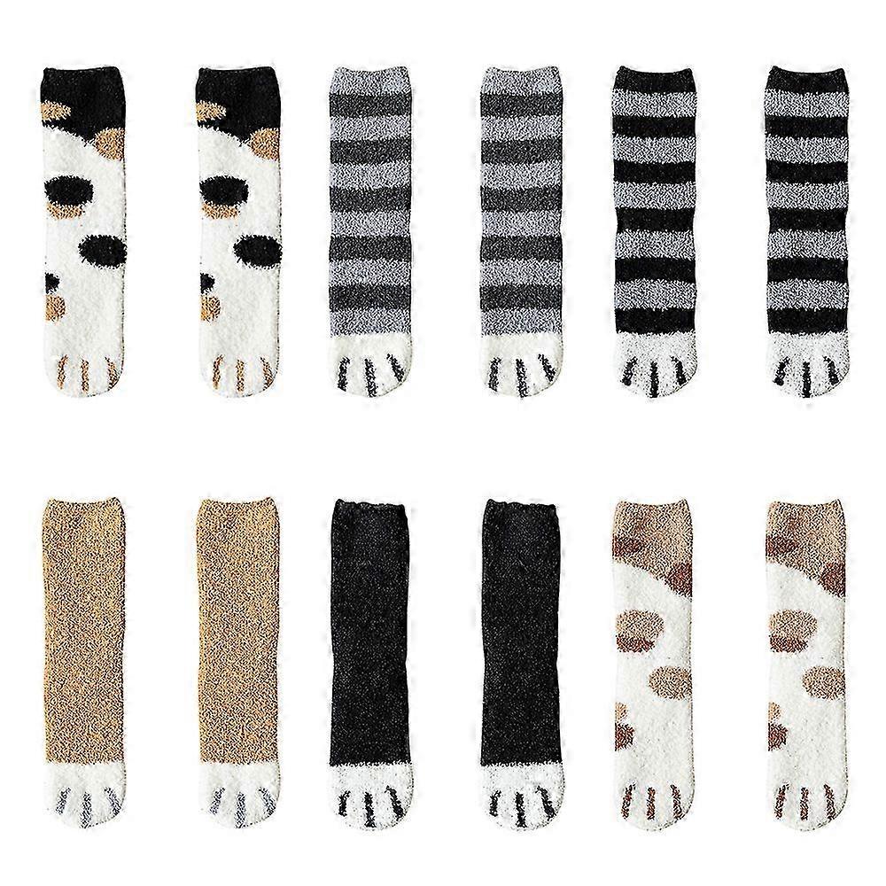 3/5pair Women Cats Paw Stripe Thermal Fluffy Socks Soft Floor Sleep Socks Autumn-Winter
