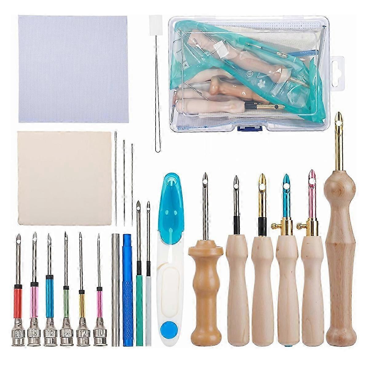 35Pcs Punch Needle Kit Wooden Punch Needle Tool Adjustable Punch Needle for Embroidery Floss CrossStitching Beginner js