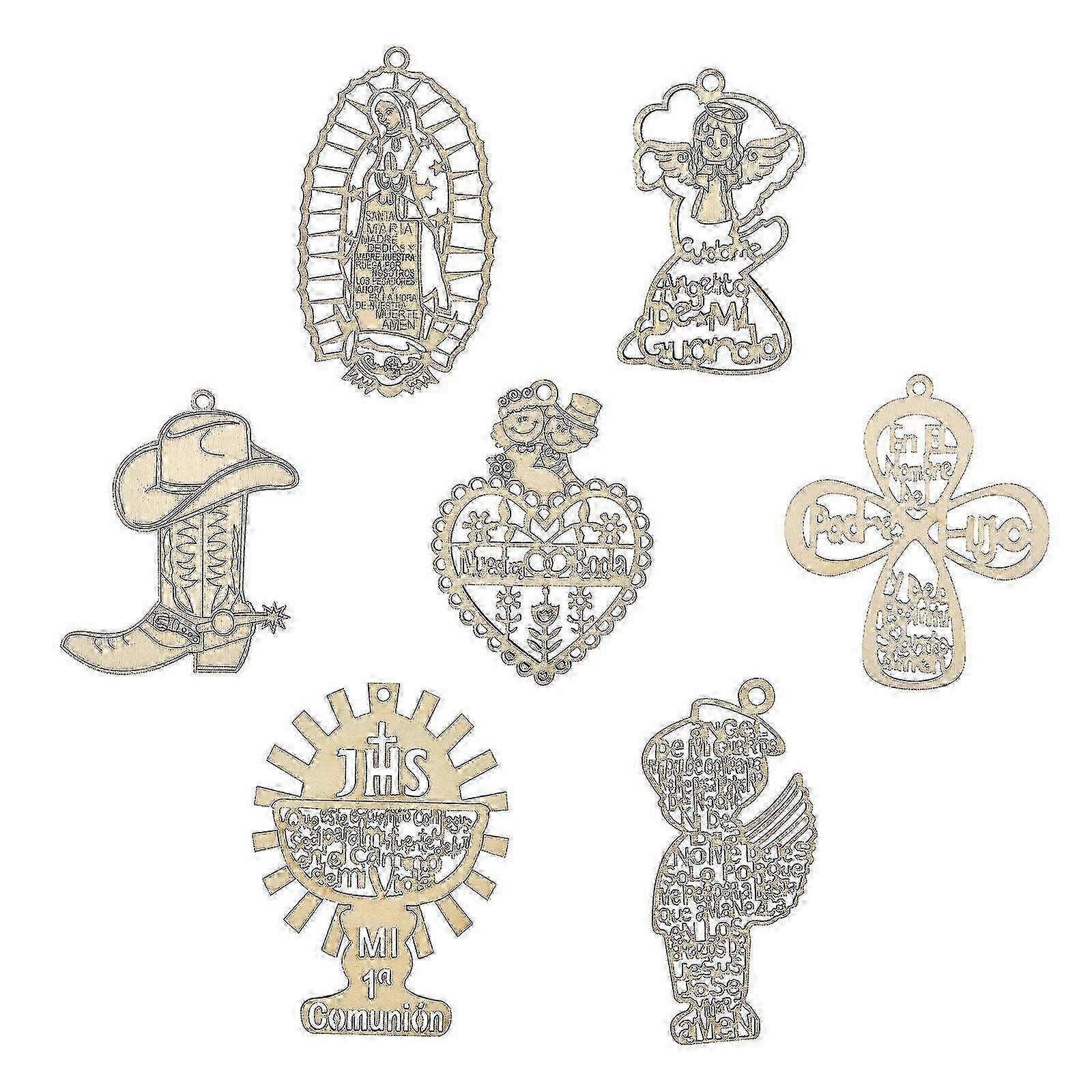 35Pcs 7 Styles Wedding Theme Hollow Wooden Charms Unfinished Wood Cross Angel Cutouts with Hole