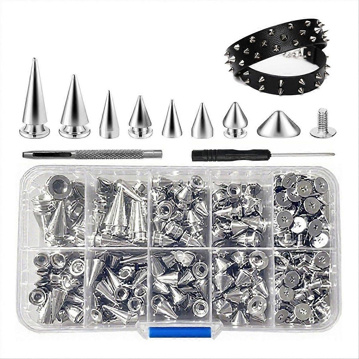 354 Pieces Punk Spikes and Studs Kit - 8 Sizes Cone Spikes, Metal Tree Spikes Studs for Leathercraf