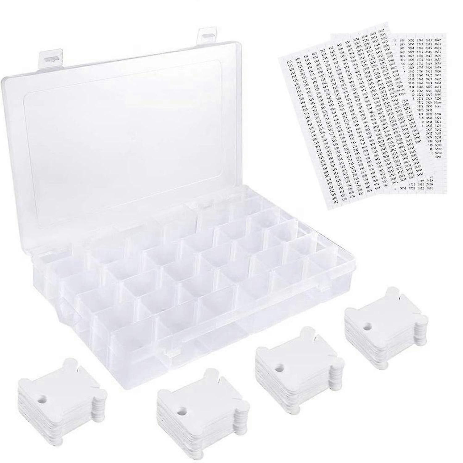 36 Grids Plastic Embroidery Floss Organizer Box & 50 Floss Bobbins & 2PCS Floss Number Stickers for