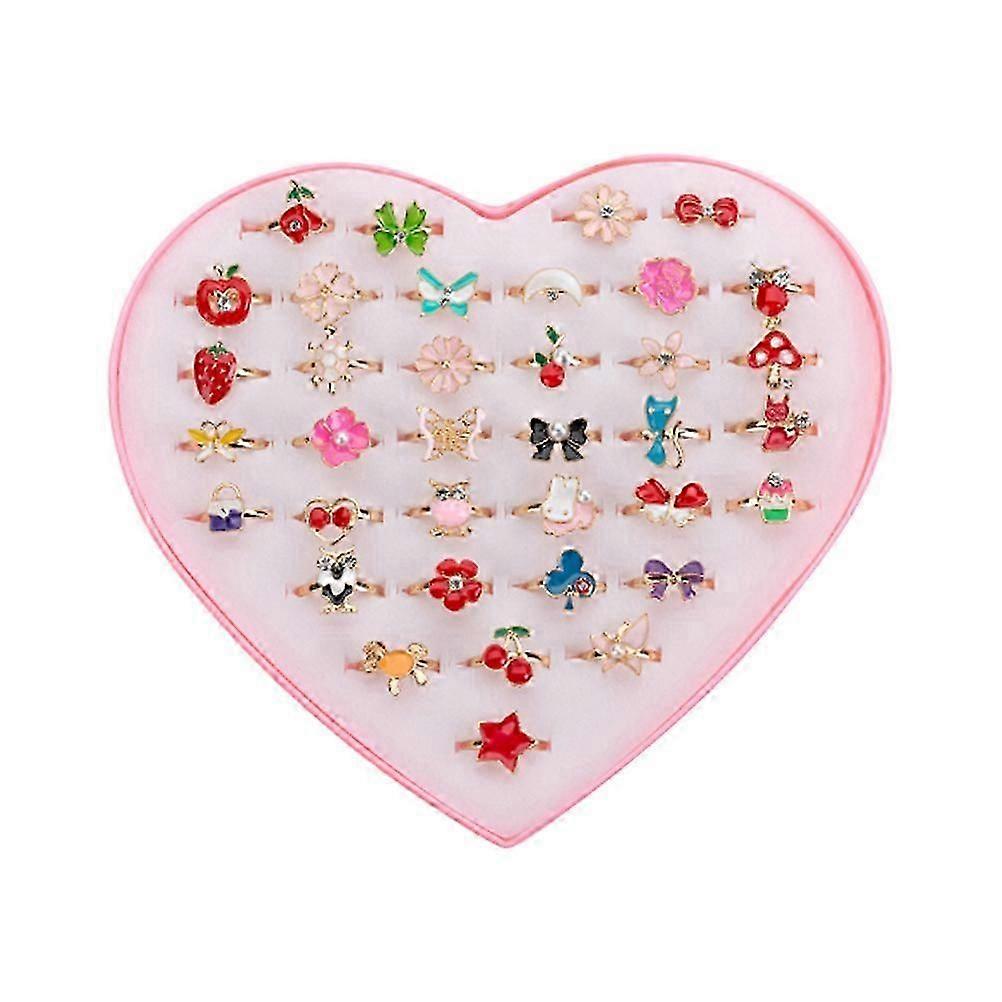 Description Designs of 36pcs alloy ring that will make your kids mesmerized. Heart, flower, and many other colorful patterns, very beautiful. Can be used as birthday goodie bags stuffer, pinata fillers, tea party pretend play, carnivals, treasures box and more. Features - Color: Mixed Style and Colors.- Size: About 1.5x1.5x1.5cm.- Material: Alloy.- It'a good gift choose for your princess.- Perfect accessories for dressing up your girl for parties and other fanciful occasions.- We packed these girl rings with heart-shaped gift boxes, it's a good gift choose to your princess.- Made of material, which is durable and lasting for use.- Gifts for yourself, or friends and family to give them a little surprise.Packing list: 36 x rings