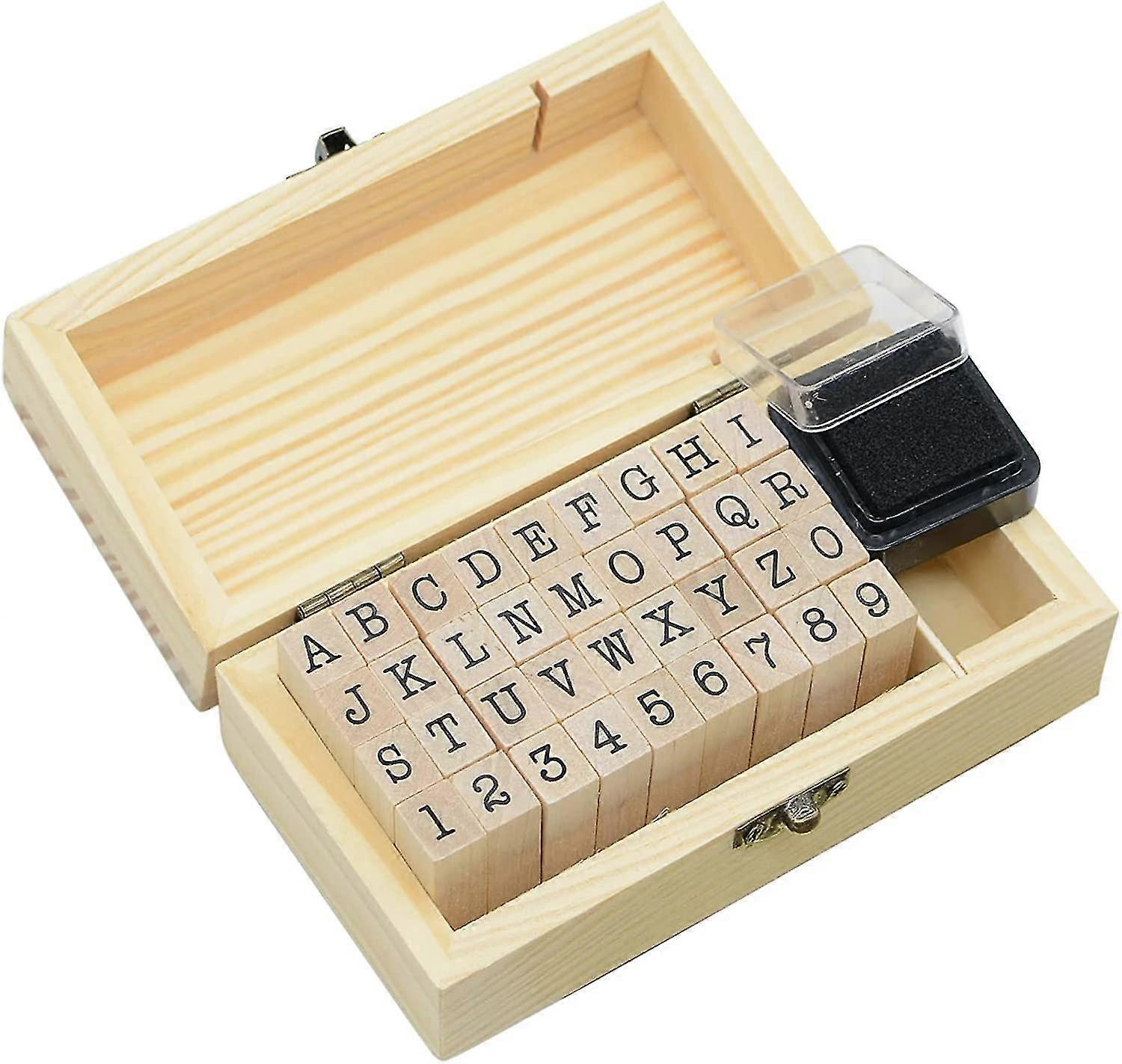 36pcs/set Mini Small Wooden Stamps Box Multipurpose 02 / 5mm Number A-z Alphabet Letter Wood Rubber Stamp (a)