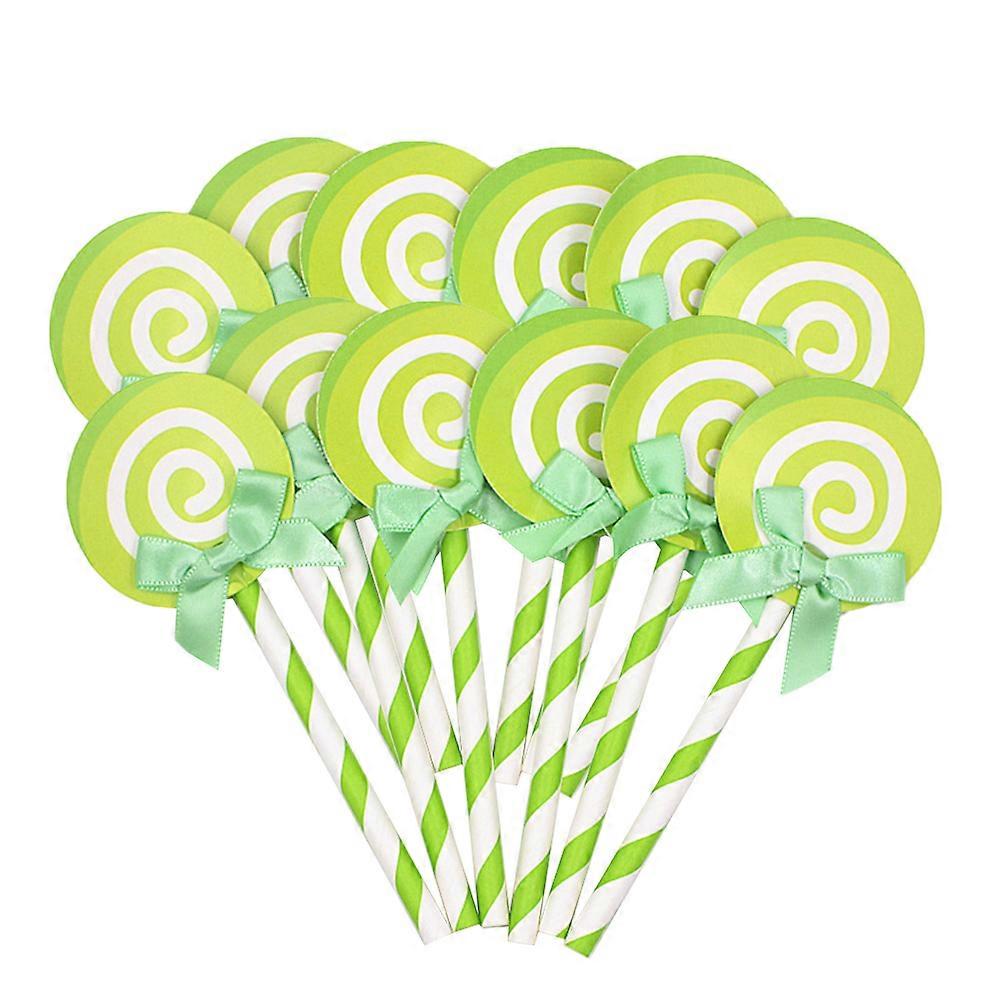 36PCS Lollipop Cupcake Picks Paper Birthday Cake Toppers Lovely Lollipop Bow Cake Decorations Dessert Table Decorative Supplies Creative Lollipop Cake