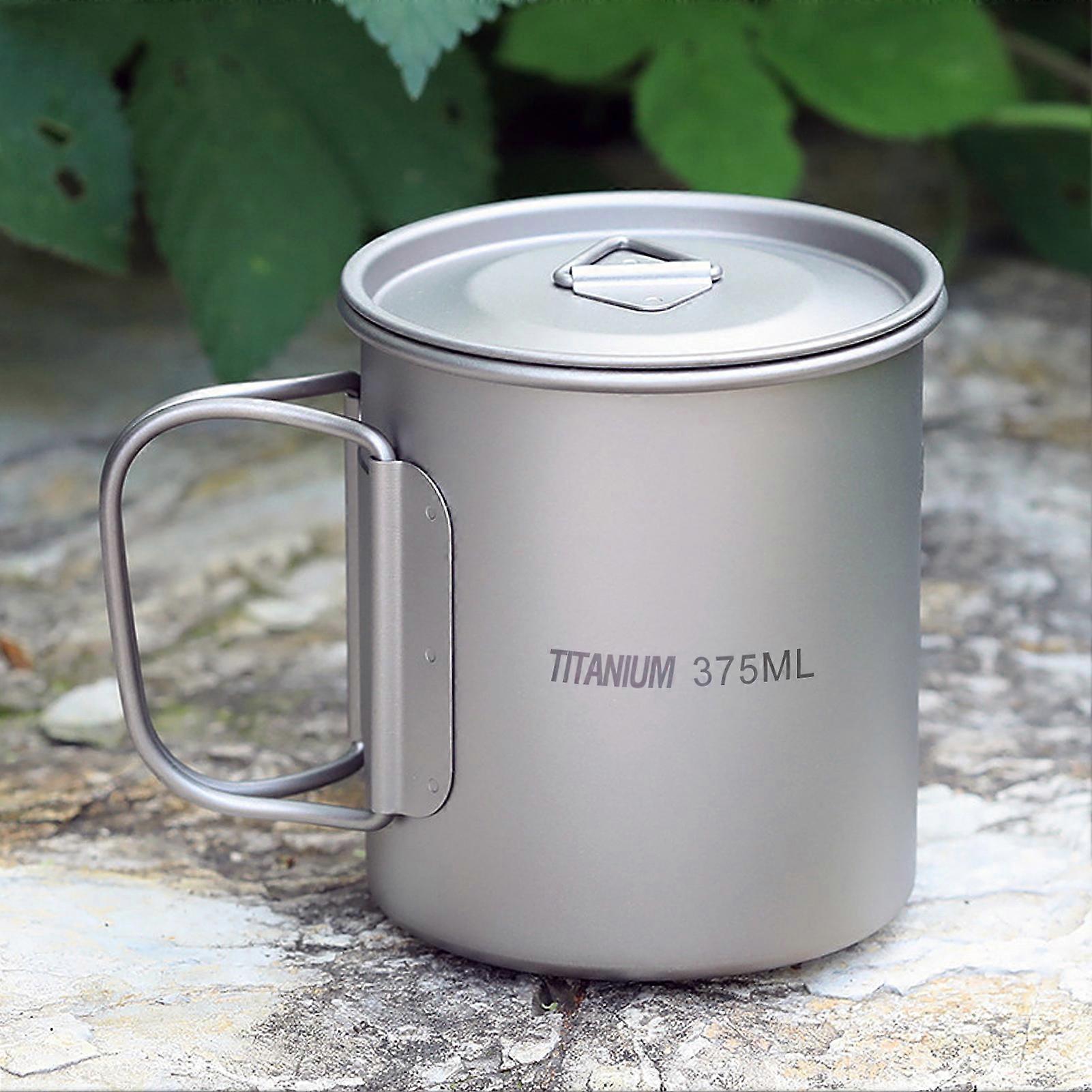 375ml Ultralight Titanium Cup Outdoor Portable Camping Picnic Water Tea Cup Coffee Mug with Lid and Foldable Handles