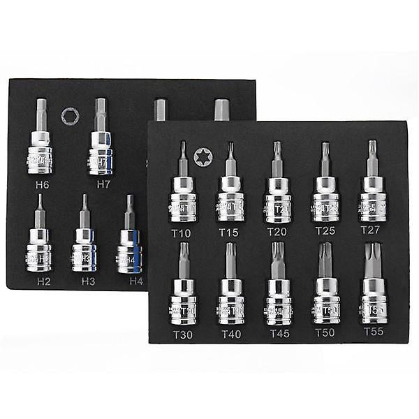 3/8 Inch Drive Socket 10pcs T10-t55 Torx Socket 9pcs H2-h10 Socket Bit Set