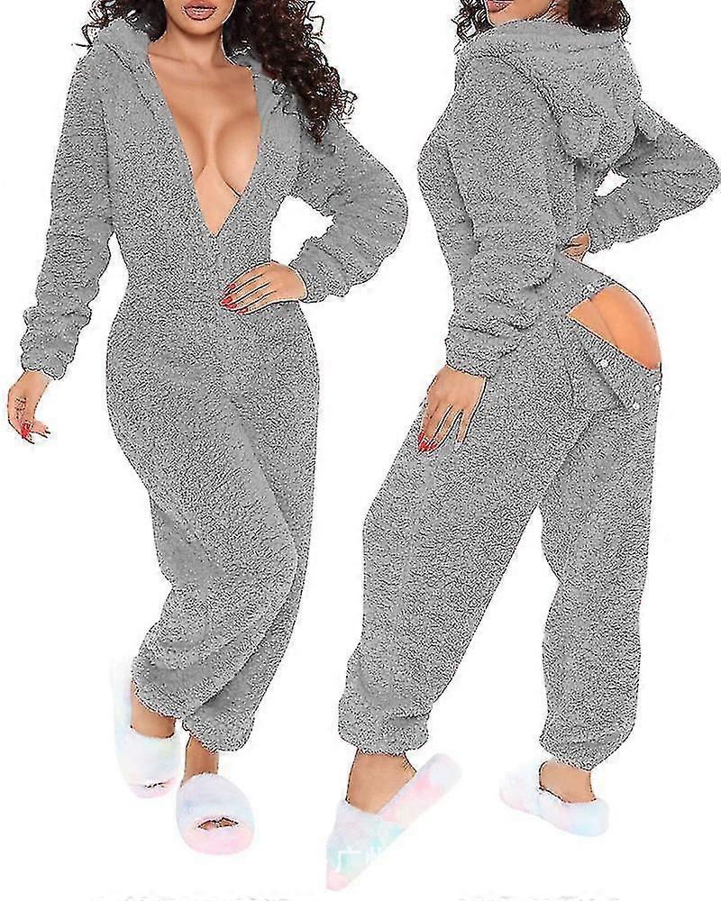 3d Ear Buttoned Jumpsuit Hooded Home Wear Pajama High Waist Flap Functional Fluffy Lounge Jumpsuits Overalls Solid Color