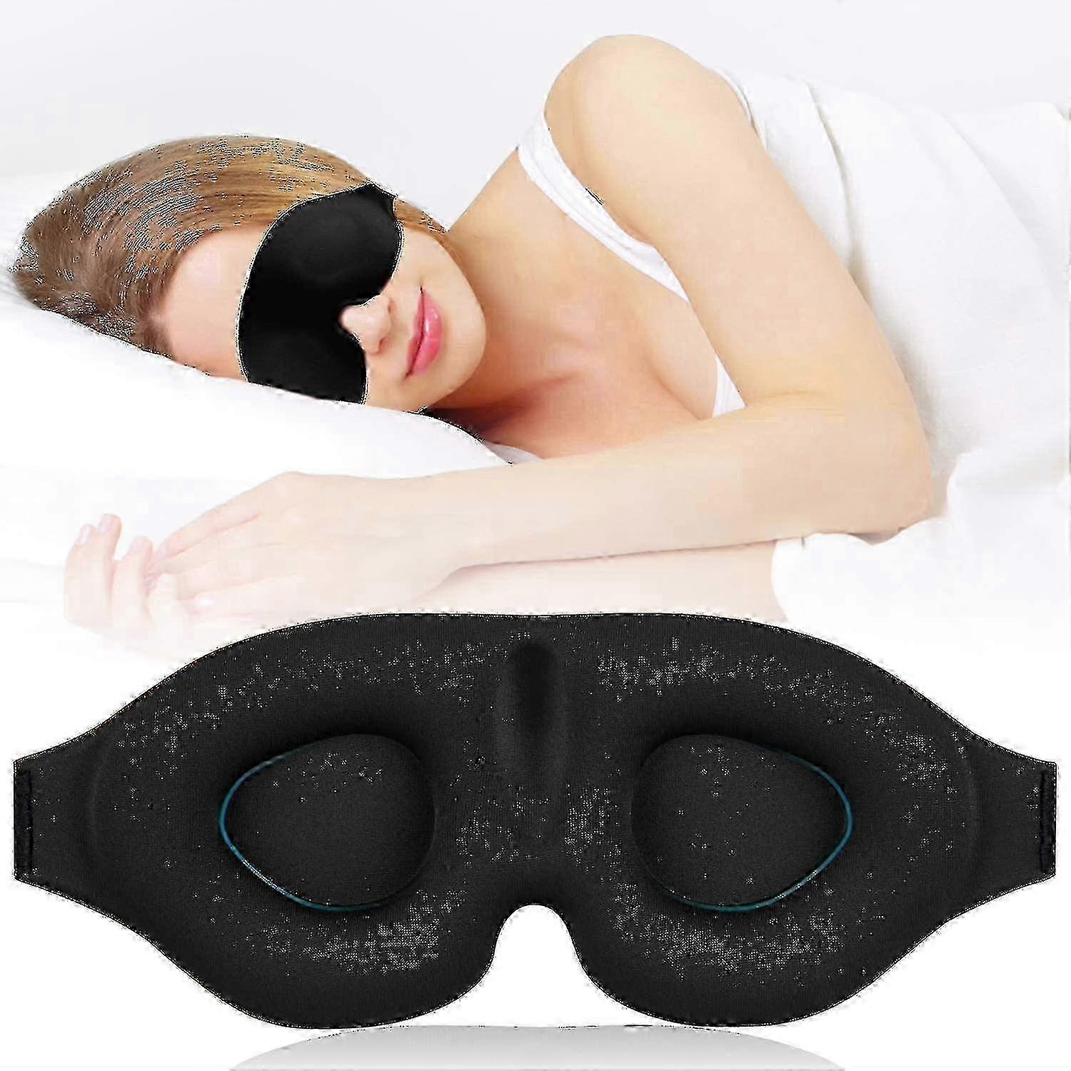 3d Man And Woman Sleep Mask With Innovative Hidden Nose Wings Pattern, Black Rubber Adjustable Night Mask