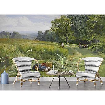 3D اللوحة الزيتية حقل القمح الفلاحين العمل جدار جدارية خلفية Gd 4414