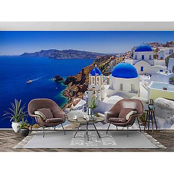3D جميلة أويا مدينة سانتوريني جزيرة اليونان جدار جدارية خلفية Gd 5647