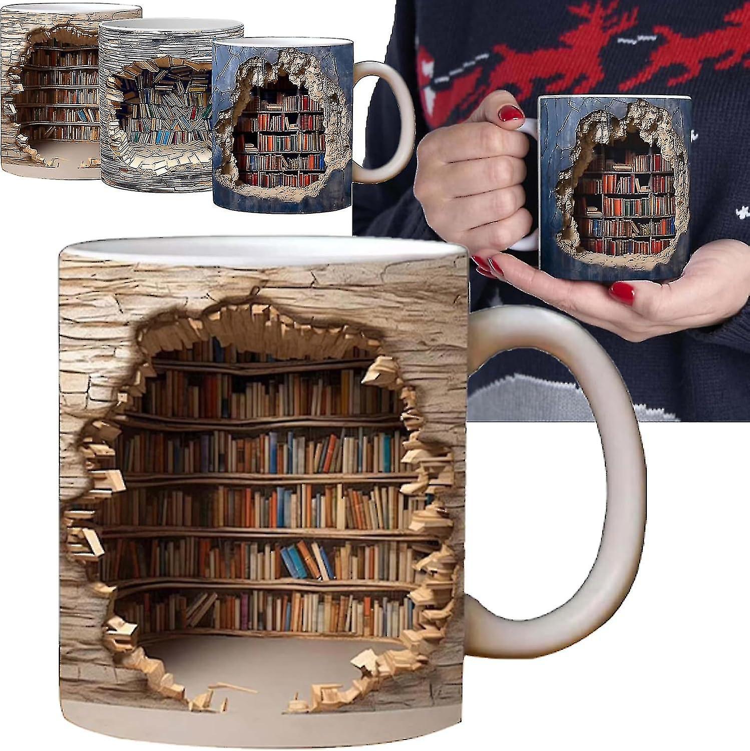 3d Bookshelf Mug, 3d Effect Books Mugs, Creative Space Design Multi-purpose Ceramic Mug, Coffee Mug Gift For Book Lovers -Q357