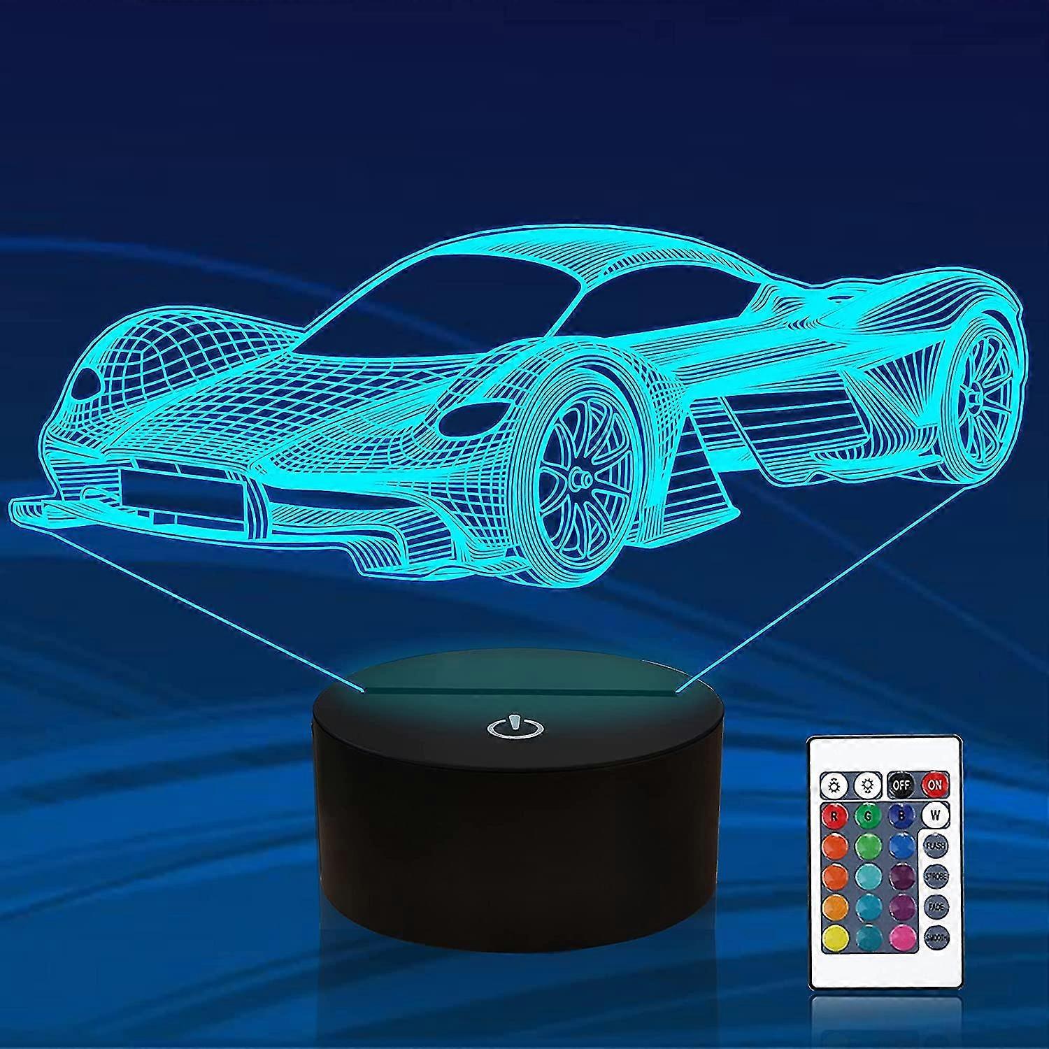 3d Car Night Light For Kids, Sports Racing Illusion Optical Bedside Lamp 16 Colors Changing With Remote Control Kids Room Decor