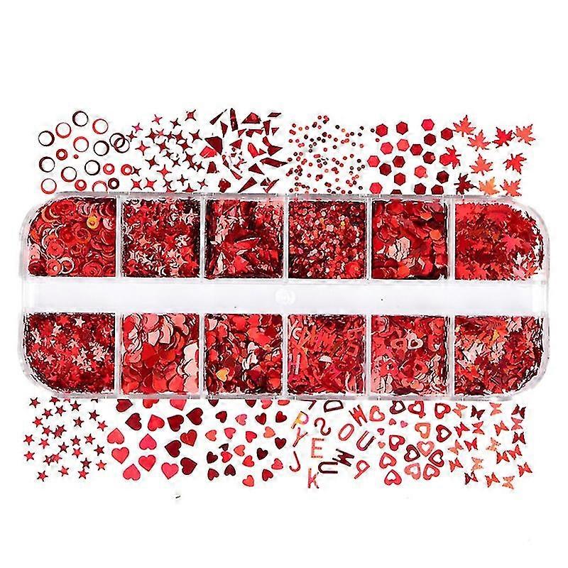 Valentine's Day Heart Nail Art Glitter Sequins 3d Nail Art Stickers Decals 12 Cells Heart Butterfly Nail Glitter Flakes