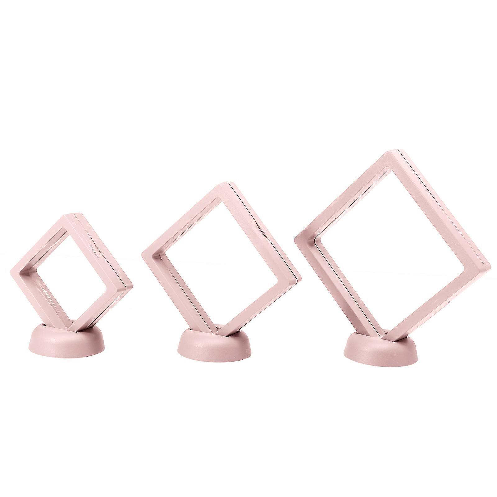 3D Floating Jewelry Frame Display Holder for Storage 3Sets Pink