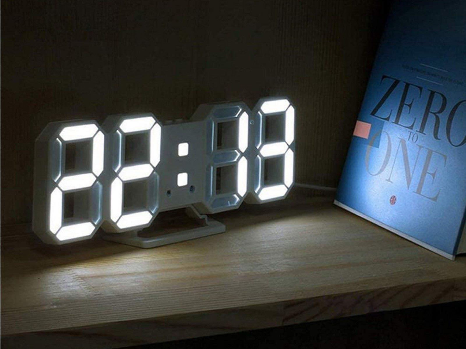 Description: This 3D LED digital alarm clock can be hung on the wall, and with the large 3D LED number display, time is clearly to see at a glance Features: The base is removable and with a back hole, can be hung on the wall It has the timer function and can be set to ring every 5 minutes Powered by USB cable (no power plug) It can be switched in 12/24 hour system Restarting after power failure also has memory function Specification: Material: Plastic Color: White Size(LxW): 21.5 x 9.8cm Package Contents: 1 x Alarm Clock
