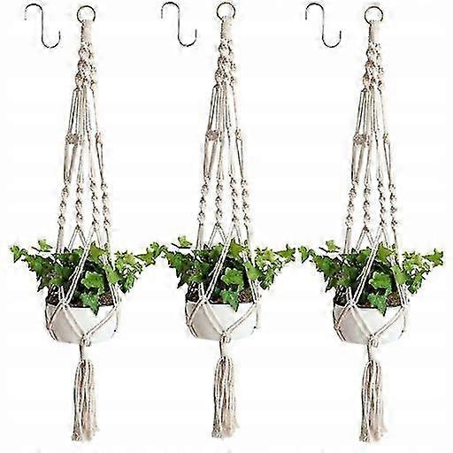 The hanging plant holder is strong and durable, enough for a round or square pot. Suitable do indoor and outdoor use. Vintage style can be hung in the ceiling or on the wall with a hook. And our hanging plant holders are carefully handmade instead of machine. Hanging plant baskets are ideal for green technology, balcony garden, home textiles and gardening, flower garden, kindergarten, etc. This cotton rope plant hanger is a practical and wonderful gift for plant lovers and makes your life colorful. Package of hanging planters do indoor plants: Pack of 3. Material: Cotton. Color: white cream. Wireless transmission: No Overall length: 100cm (manual measurement error) Color: White Number of Wires: 4 Rope Wires Packing list Siatka for pots x 3 Hooks do suspension x 3 Real photos shared by our customers