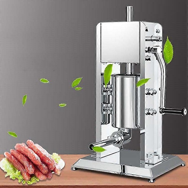 3L Manual Sausage Filling Machine Stainless Steel Sausage Filling Machine Details: 1. Weight: 10 kg 2. Purpose: making sausages 3. Dimensions: 52x31x31 cm 4. Material: stainless steel 5. Applicable scenarios: household, commercial, meat processing plants, restaurants 6. Description: with 4 different sizes of enema mouth (1.52.03.03.5 cm) Features: 1. Stainless steel food grade material, which can directly contact the food 2. Removable design, easy to clean 3. Strong wear-resistant, durable 4. Hand crank, easy to operate 5. Silicone sealing ring, clean and hygienic 6. Fine rack design, not easy to rust, finer adjustment 7. Stainless steel base, stable and non-slip