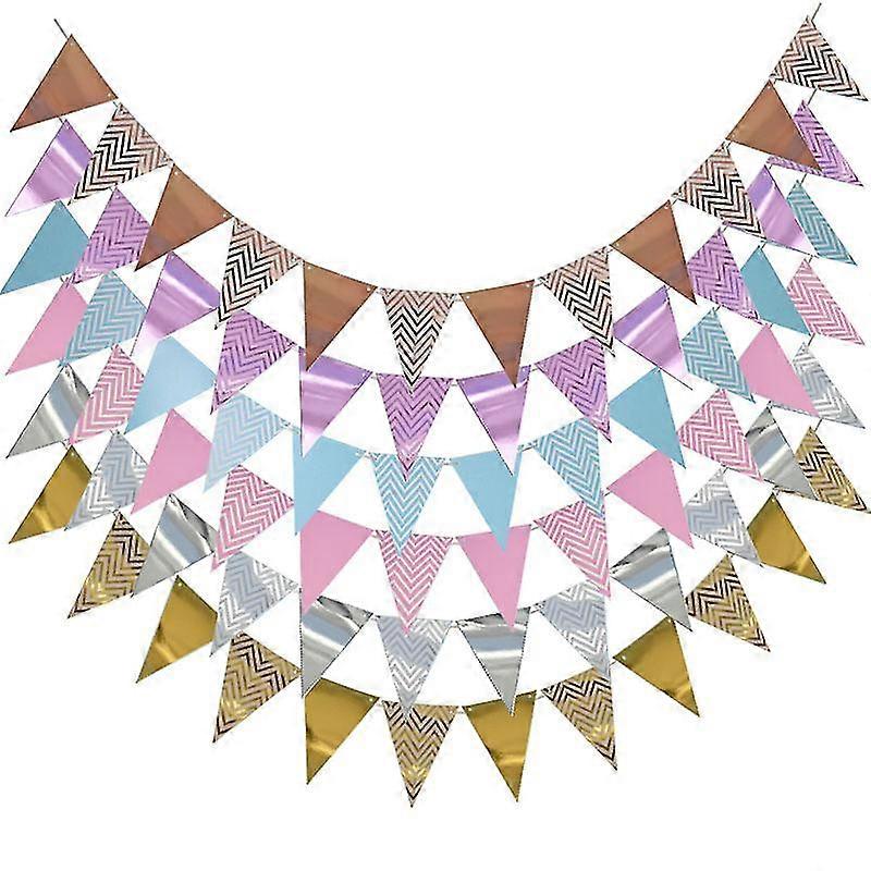 3m 12 Flag Gold Pink Paper Board Garland Banner For Baby Shower Birthday Party Decoration Kids Room Decoration Garland Bunting